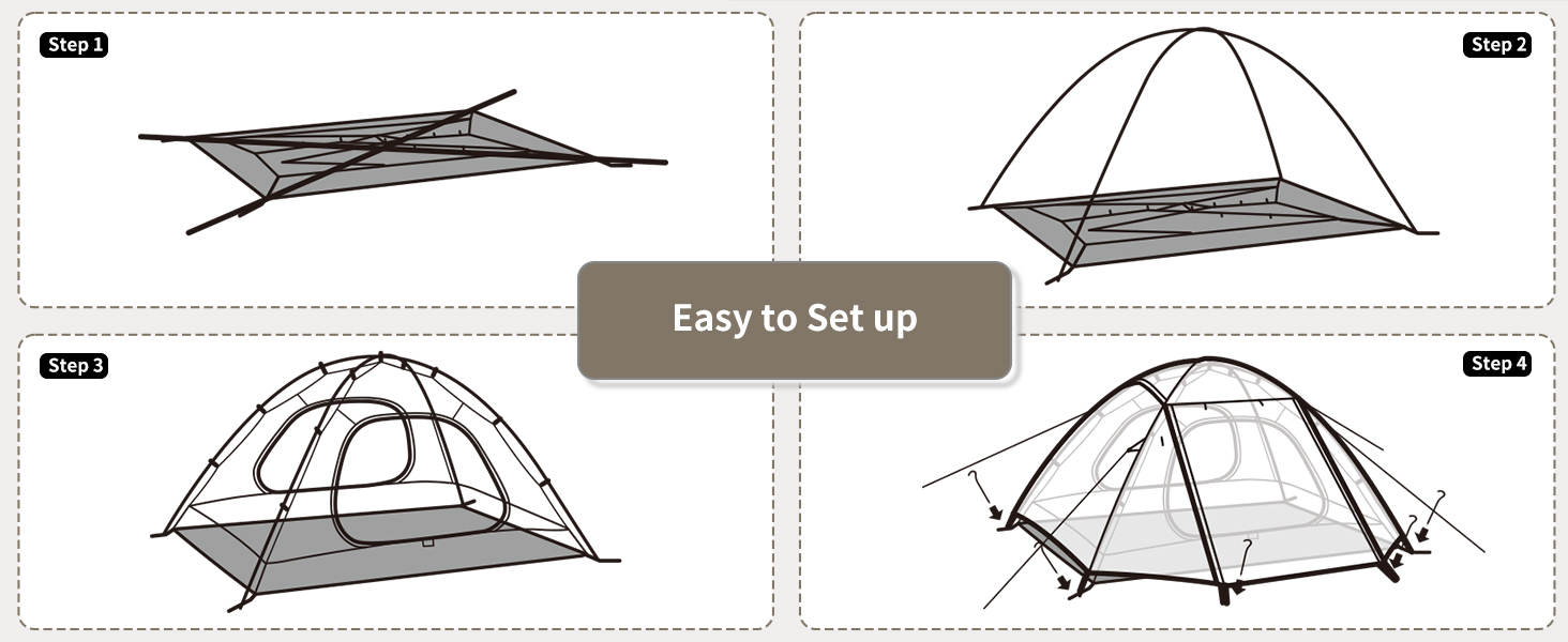 Convenient Setup: The tent adopts a three-pole cross structure, making setup a breeze. Once familiar with the process, the tent can be pitched in 3-5 minutes.