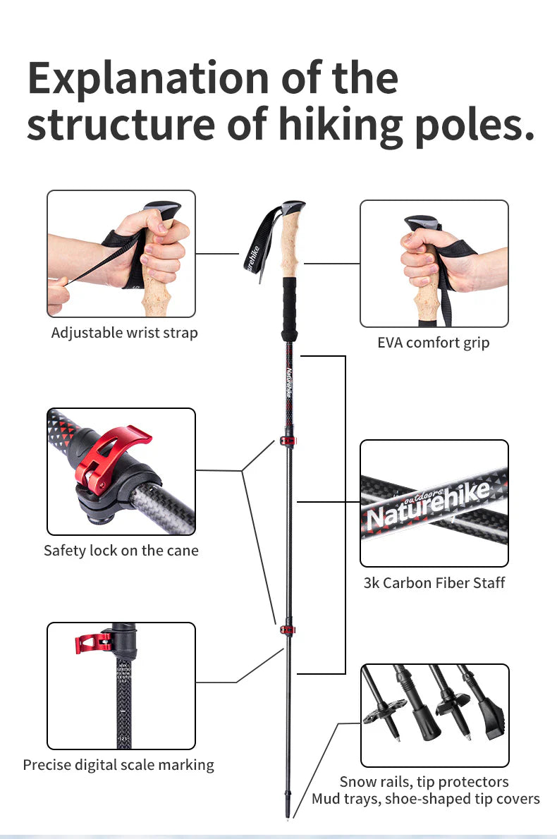 Naturehike Far Wind™ Three-section Telescopic Carbon Trekking Pole