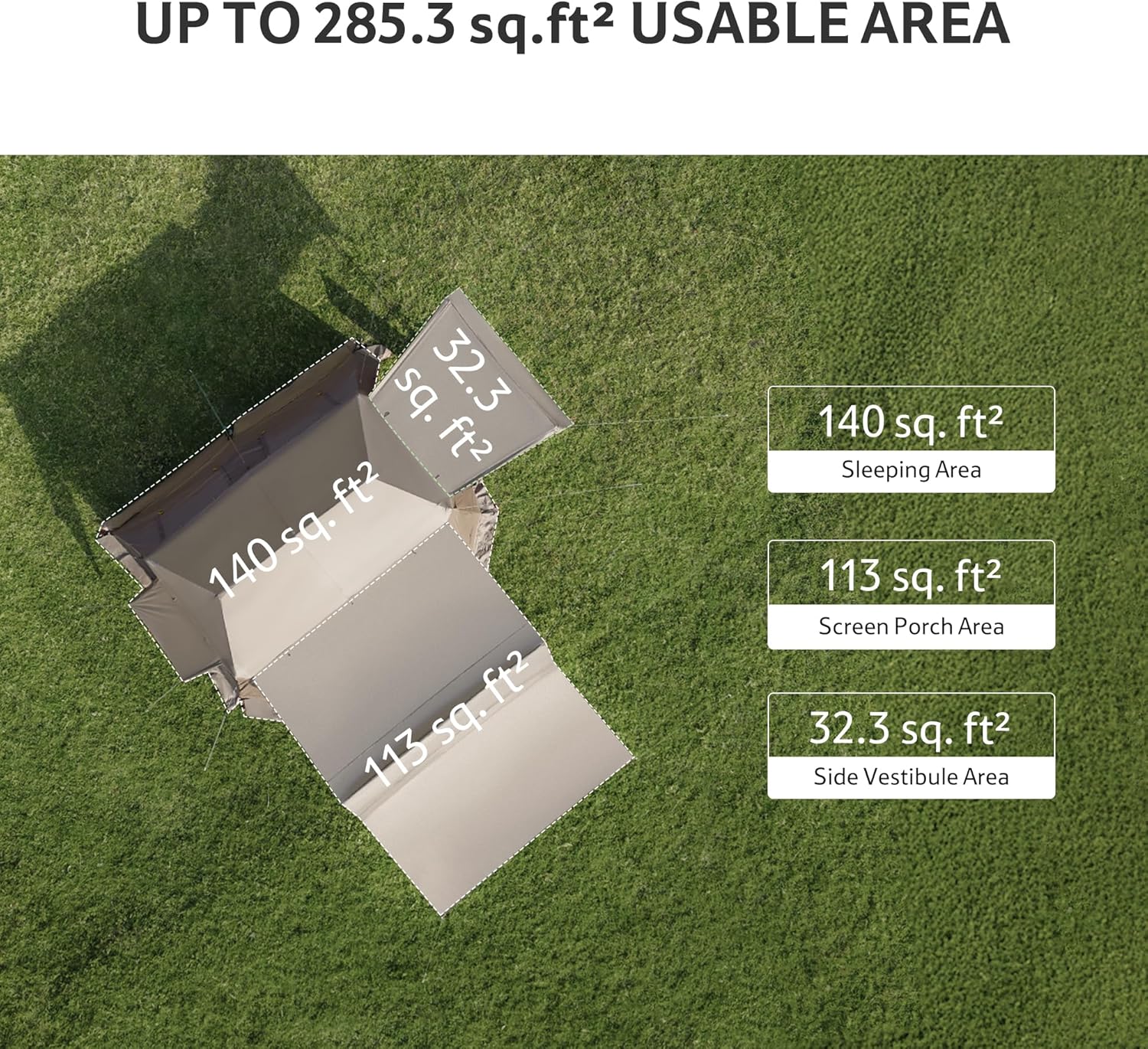• Family-Focused Design – The detachable screen porch creates extra space for gear storage or outdoor dining, enhancing comfort for large groups and families.